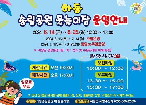 하동군은 여름철 무더위를 식혀줄 도심 속 피서지 하동 송림공원 물놀이장을 오는 14일 개장한다고 밝혔다.