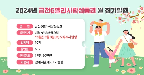금천구(구청장 유성훈)는 서울시 자치구 최초로 오는 5월 8일부터 '금천G밸리사랑상품권'을 매월 정기 발행하고 페이백 이벤트도 진행한다고 밝혔다.