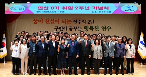 연수구(구청장 이재호)가 지난 1일 민선8기 2주년을 맞아 지역 인사와 전 직원들이 함께 지난 2년간 구민과 함께한 변화의 기록을 공유하고 앞으로 더 나은 연수구를 다짐하는 기념식을 개최했다.