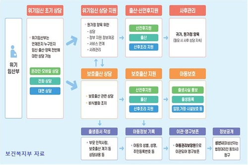 위기임산부가 상담을 요청하는 경우 우선적으로 원가정양육을 위해 임신·출산·양육 시 지원받을 수 있는 공적 제도 등에 대해 안내하고, 부득이 보호출산을 신청하게 되면 의료기관에서 비식별화(전산관리번호 부여) 조치를 통해 가명으로 출산할 수 있도록 지원한다.